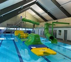 I pausen får de yngste ta seg en tur i svømmehallen som ligger i samme bygg som spillelokalet.