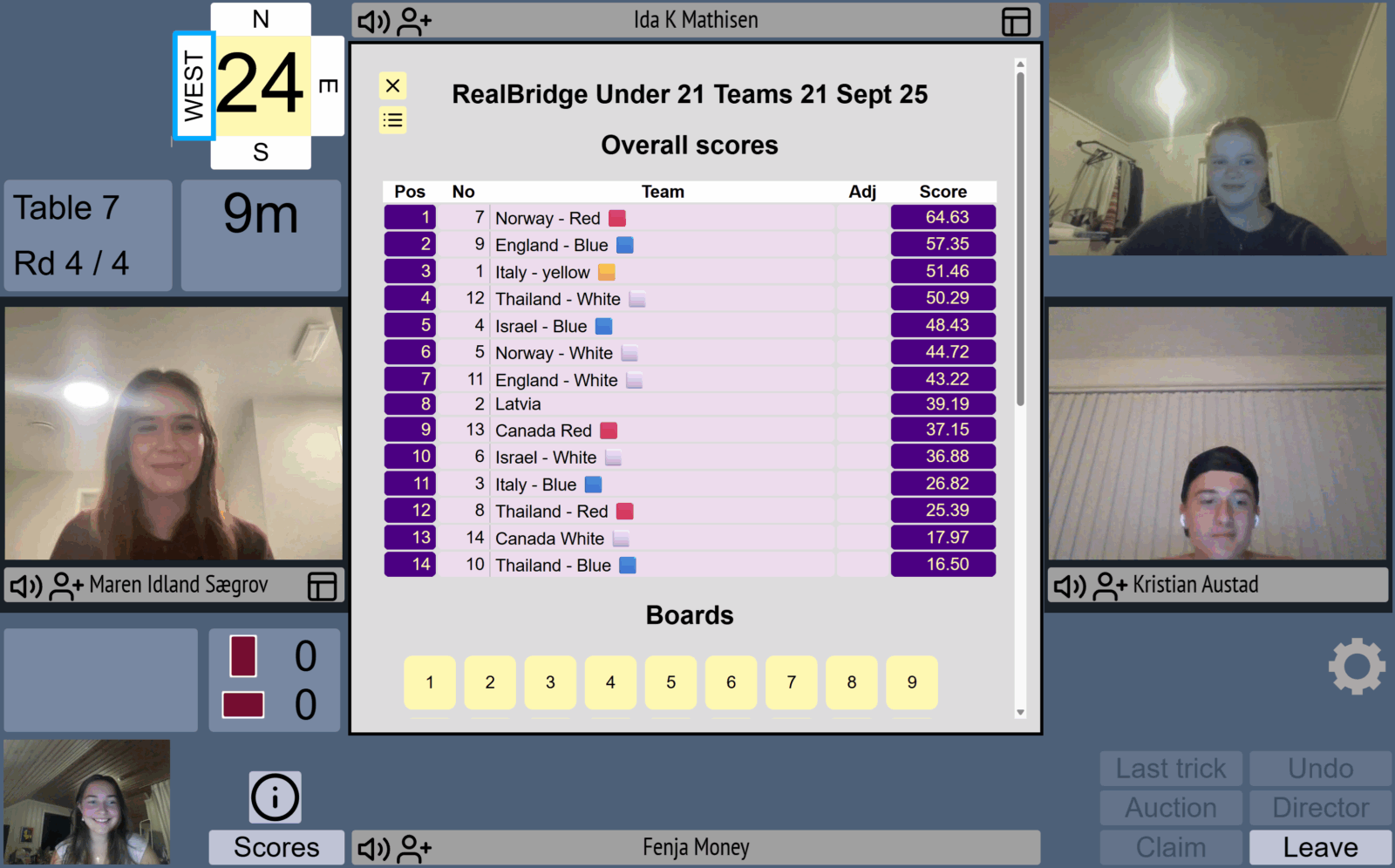 Pool A: NS: Brage Hanson Moe & Theodor Lillejord (Norway). EW: Omri Kornblit & Jonatan Ben Melech (Israel)
